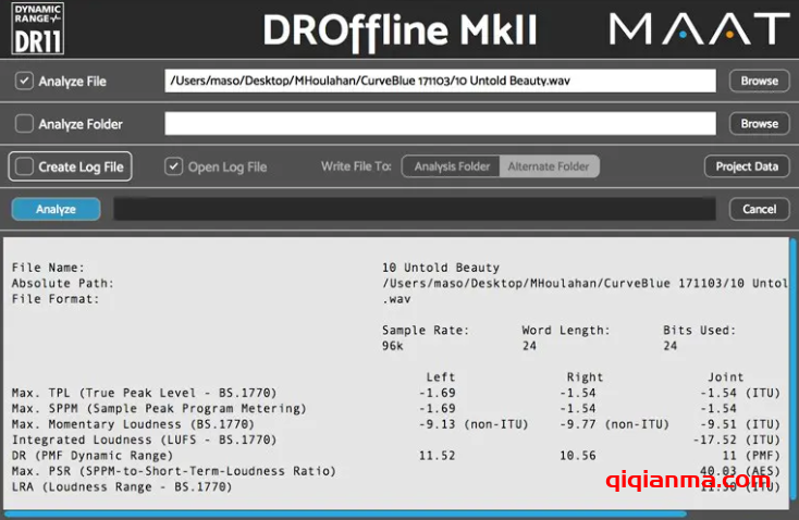 MAAT的DROffline MkII是我们官方DRMeter MkII实时DR + R128测量插件的批量测量配套应用程序,