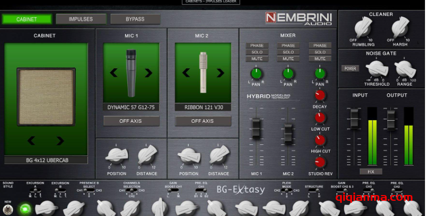一个完整的录音链,带有六个选定的吉他驾驶室仿真