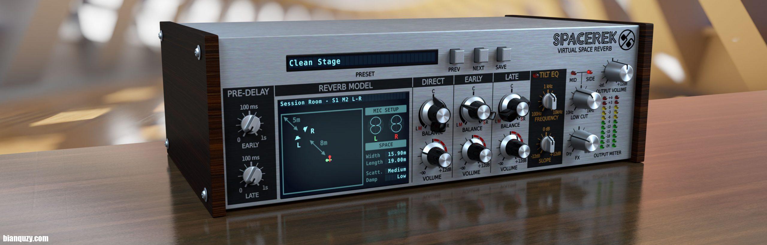 Spacerek v1.2.1:Spacerek 背后的混合算法将模拟的虚拟空间与动态延迟网络相结合,生成具有逼真的早期反射的混响尾和算法密集的后期反射,具有可单独配置的 ER 和 LR 预延迟时间。数十种模拟房间类型包括大厅、塔楼、摄像机、隧道等,每种房间类型都结合了许多预设的立体声麦克风设置和扬声器,构成了 114 种混响模型的列表。每个混响型号都预先配置为在立体声左右或中音模式下运行。Spacerek还允许您使用简单的三通道混音器平衡直接信号,早期反射和后期反射。此外,倾斜均衡器和低切滤波器模块提供公共尾部的最终形成。