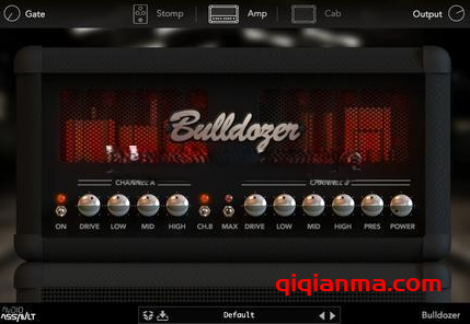 Bulldozer comes with the tools you need to find your perfect sound. Experiment with the 10 stompboxes, 2 channels and 4 meticulously modeled fully adjustable guitar cabinets, or use your own, Bulldozer also comes with a built-in impulse loader.