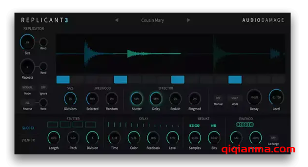 Replicant 3 提供了广泛的功能,允许您以令人兴奋的新方式操纵音频。您可以使用内置音序器创建自定义节奏模式,让您实时循环、反转和重新切片音频,同时应用延迟、滤波器、平移、环形调制和位粉碎效果。