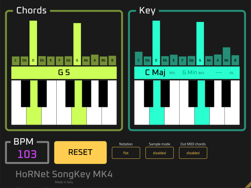 HoRNet SongKey MK4 是调性侦测工具的第四个版本,但是它并不只是做简单的调性识别,它还可以侦测正在演奏的和弦和歌曲的速度。