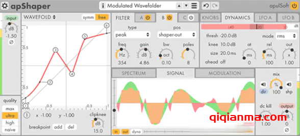 调制选项的波形器-两个lfos,一个动态检测器和用户可配置的旋钮。