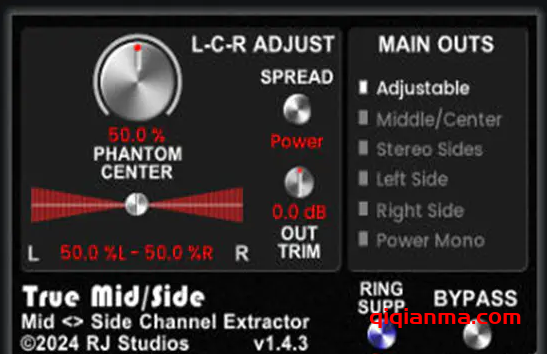 True Mid/Side是一款独特的插件,能够从立体声混音中提取出真正的幻象中心(Phantom Center)和真正的立体声侧信号。