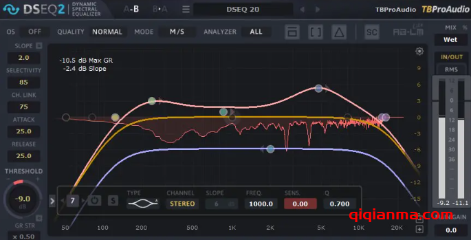 DSEQ支持自定义阈值,可将DSEQ转换为智能多频带压缩器。