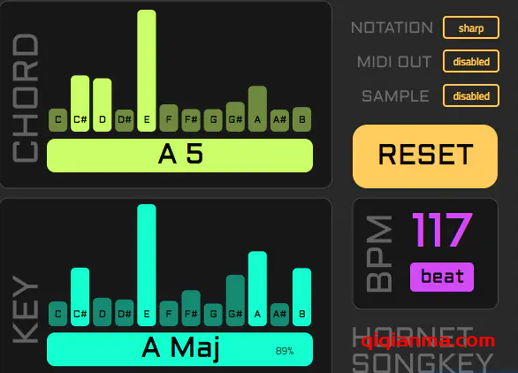 按键检测实用程序,可实时查找歌曲或样本的按键和弦和节奏
