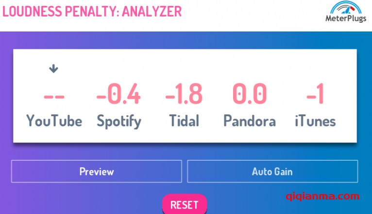 每个流媒体平台都拥有自己的响度标准。在用户上传歌曲之后,平台会自动对响度过大的音乐进行衰减,以保证相对统一的收听体验。而 Loudness Penalty 这款插件可以直接在宿主软件中告诉你,你的音乐在流媒体平台将会被衰减多少响度,包括 YouTube, Spotify, TIDAL, Pandora 和 Apple,所以你就可以根据你需要的需要的响度值做出调整,避免平台自动衰减带来的问题。
