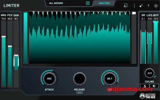 如果您觉得音轨需要更多的能量和感知响度,请增加 NRG 滑块以使用谐波失真输入增益(我们专门为母带制作应用程序创建)来驱动声音。