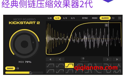 忘记摆弄压缩器——Nicky Romero 和 Cableguys 将专业侧链所需的一切都放入一个快速、简单的插件中。只需将 Kickstart 放在任何轨道上,即可立即降低每个底鼓的音量,为您的贝司创造空间。