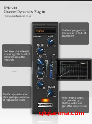 DYN500被设计为“每通道一个”的压缩器/动态插件,可用于单声道或立体声通道,提供专业的控制台级处理,并有效利用CPU和系统资源。