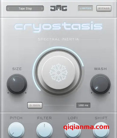 Cryostasis is a spectral inertia effect that can progressively smear your audio until infinitely frozen in time. It features spectral FX and controls to shape the character of the frozen tail. All are controlled by a continuously variable freeze knob or an auto switch that can be timed in milliseconds or musical measures (double-click).