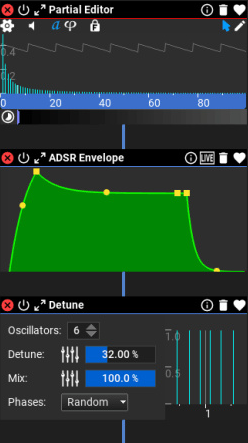 Syne is a new, fully modular additive synthesizer capable of rendering more than 40000 partials realtime on a recent CPU (=powerful) while having full control over each partial (=flexible). This allows making complex sounds that are not possible with other types of synthesis.