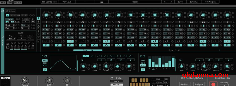 这是一个受模拟音序器启发的 32 步音序器。 您可以使用参数调制创建不断变化的模式。 有 5 个模块可用。 (Pitch SEQ、Param SEQ、CC SEQ、CC Rack 和 Oct/Tp SEQ)。 每个音序器/机架单元都有 8 个专用调制控制。