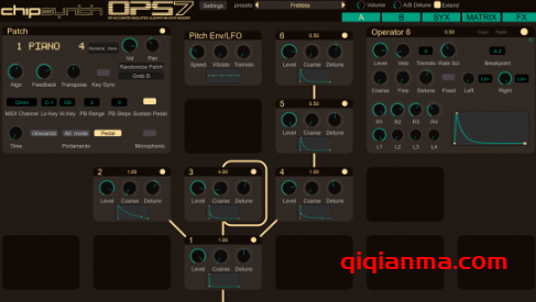 除了全套效果外,我们还为chipsynth OPS7 提供了一个改变游戏规则的动态补丁编辑系统,使FM 补丁创建比以往更容易,并且无需繁琐的算法图。在扩展模式下,您还可以使用来自 TX81Z、SY77 和 OPL3 的波形。