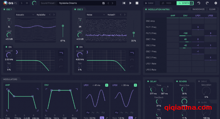 新的Orb Synth为套件的所有4个插件提供了令人惊叹的声音。两个振荡器,两个lfo加上安培和包络。我们还增加了一个很酷的混响,延迟,和一个强大的嘎吱驱动器。在这里,您可以调整声音或生成自己的synth补丁。