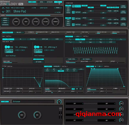 • 4 个振荡器,具有 9 个虚拟模拟波形、Supersaw、噪声、PCM 和 PCM SYNC。