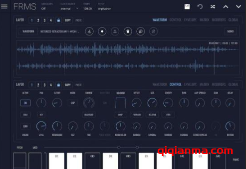 FRMS一个颗粒合成器野兽与FM皮带。FRMS是一个多功能的颗粒合成器,结合颗粒合成与FM合成使用灵活的分层系统。从高度密集的环境无人机,到故障的机械生物,将简单的声音变成复杂的演变声景,在任何组合中多达四层合成。