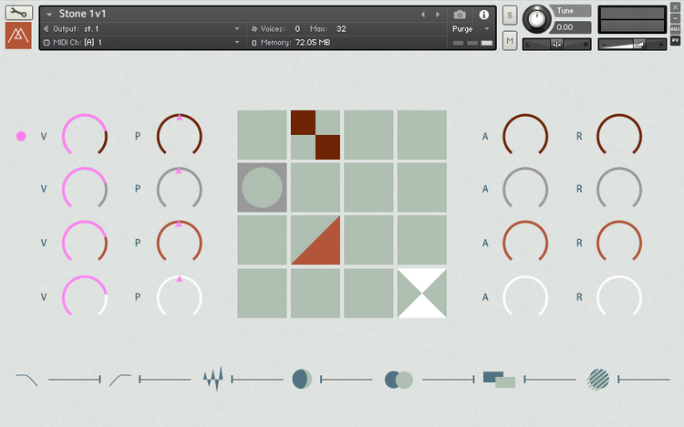Stone 中的四层罐子就像作曲家的工具箱,可以立即使用和调整。使用内置效果处理塑造声音允许您添加角色或创建更具实验性的东西。