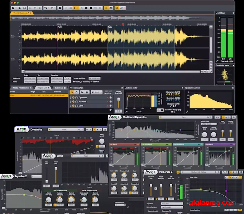 Acoustica用于音频编辑、后期制作、母带制作和恢复的终极工具包。