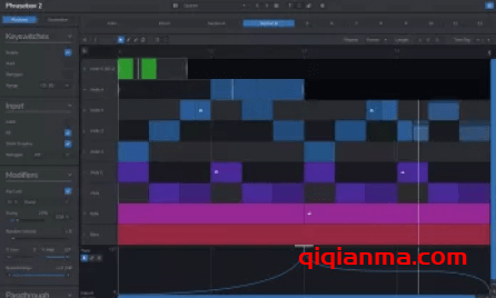 强大的编辑器支持高级乐句编辑,包括重复音符、可变行长以及任意长度或拍号的乐句。控制器编辑器可处理多个自动化通道,具有多通道输出和精细的曲线塑形功能。