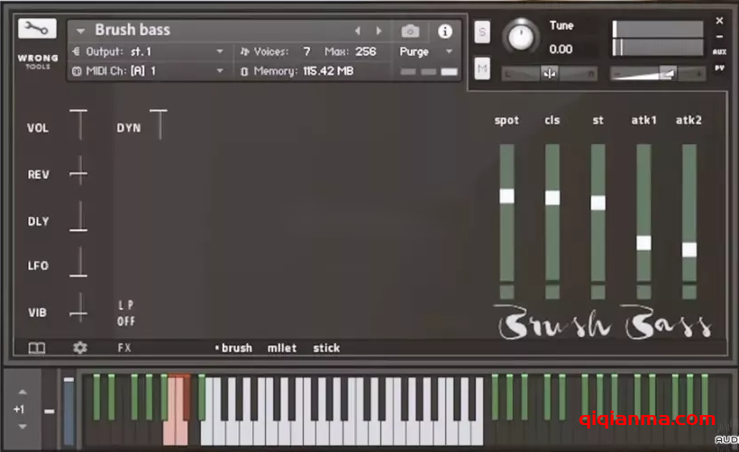 音色名称:Wrongtools Brush Bass KONTAKT-ohsie木贝斯