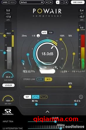 第一阶段是K加权的响度均衡器,非常适合对声音进行均衡或自动调节不同音乐的电平。在第二压缩阶段,POWAIR使用了创新的增益检测和降低引擎,能够以最小的失真和对信号源的自适应响应来快速改变增益。