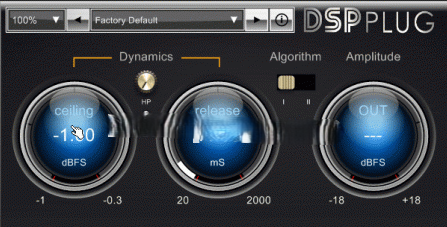 利用DSPplug的采样间峰值限制器,您可以采用恢复性和非破坏性方式避免真正的峰值,利用独特的公式避免限制器通常造成的损害,尤其是影响低音的方式。