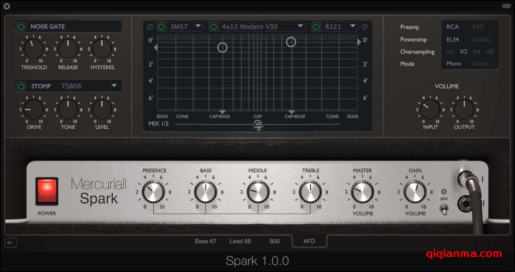 火花是一个VST/AU/AAX插件模型四个马歇尔管放大器,四个吉他柜,四个超速踏板和一套最常见的空间效应。Spark实现了我们在实时电路建模领域的所有最新成果。首先,它是一个管推拉功率放大器,工作与一个无功负载(吉他柜),与负反馈和电动饲料链。这使得我们实现了一个真正现实的功率放大器饱和(这对于大多数基于Marshall®的放大器来说非常重要),存在旋钮的现实工作,并使考虑到输出和电力变压器的影响成为可能。