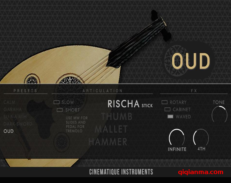 Several presets allow you to play our favorite ways to tweak the Oud.