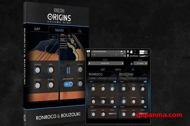 演奏一种 ORIGINS VOL 乐器。 9:RONROCO & BOUZOUKI 作为一种模式,另一种作为旋律独奏乐器,以真正利用这种令人难以置信的乐器配对。