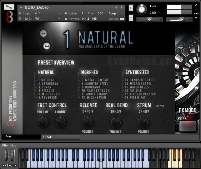 多勃罗是一个热情的,深采样的原始声音的美国多勃罗。我们详细记录了多勃罗,包括数百个自然的烦恼和释放噪音,真正的音符上下弯曲。此外,我们还记录了自然结构的样品,所以你可以玩的一切在一个结构的方式。多布罗有18个核心补丁分为自然,变形和合成类。自然类包含自然多勃罗、男高音和短笛多勃罗——而变形类包含多勃罗与其他乐器(如大钢琴、钢弦吉他、曼陀林和更为异国风格的乐器)的混合。合成类包括混合了不同类型合成物的多勃罗。