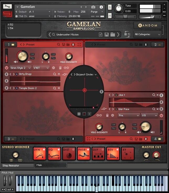 通过在一个简单易用的界面中组合气氛、仪器、打击和循环,探索Gamelan中无限的可能性。混合多达8个独特的“声源”,同时保持对每个声音的细微控制,以创造巨大的环境,粉碎的影响,复杂的循环,飙升的线索,甚至与以上所有由一个音符触发的叠加多功能。或者,只需使用包含的数千个预设仪器中的一个即可!