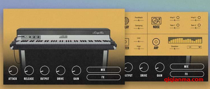 每台仪器都有一个主要的性能视图,允许您调整ADSR,锤子强度,立体声输出和主音量。在一个单独的窗口,你会发现一个真正独特的效果面板,具有磁带颤振效果,噪音纹理,和整个更多。