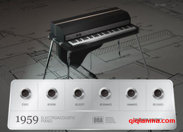 Sampleson于1959年提出的专利基于1959年注册的电声钢琴专利(使用寿命已到期)。我们使用光谱建模将其付诸实践。声音可以描述为类似于CP80的声音,但由于弦数较少,因此音调要多一些。