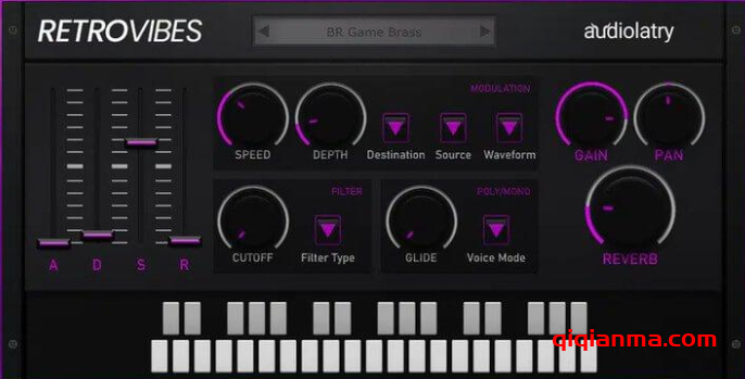 所有预设的灵感都来自 80 年代的声音,并带有复古的氛围。每个预设都可以使用一组控件进行自定义,例如 ADSR 包络、调制、滤波器、混响等。