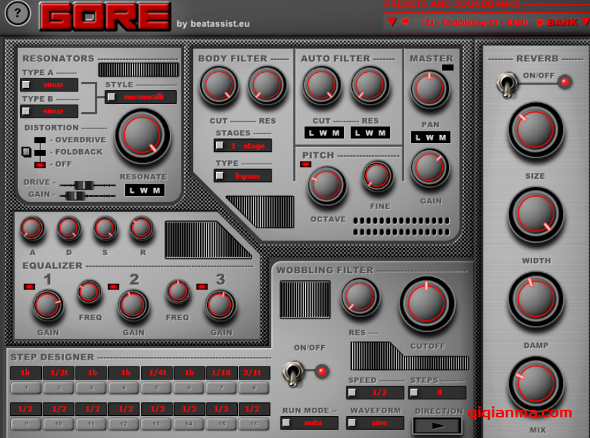 Gore 是 Dubstep 的虚拟合成器设计。借助 Gore,您可以使用其强大的 LFO 步进器创建摇摆不定的节奏和模式。