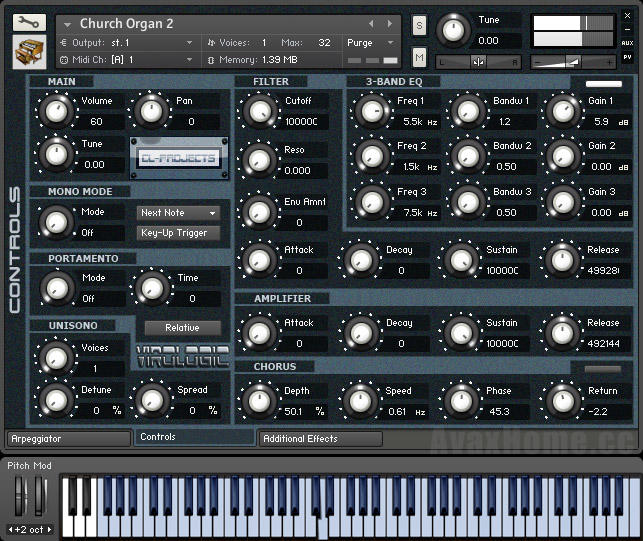 病毒学包含来自访问病毒合成器的采样补丁。样本采用24位44.100 kHz NCW格式。图书馆分为12个声级,305种乐器和43种多功能乐器。标记为“mw”的补丁在使用调制轮时会有声音变化。有三个参数页,即“控件”页,用于编辑主要参数,如Portamento、Uniono、信封和过滤器设置、“附加效果”页用于编辑效果参数,“Arpeggiator”页用于编辑声音并添加节奏元素。