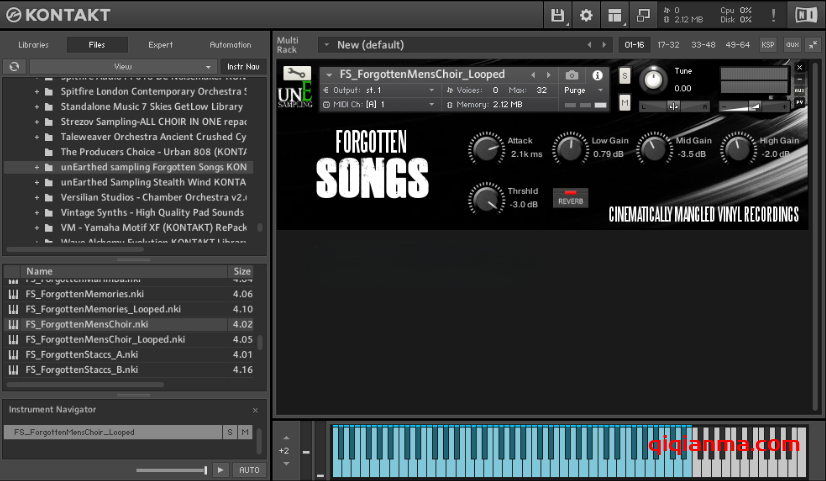 还包括许多补丁的循环版本。结合在mod轮上的LFO控制和GUI上的攻击/ EQ控制,你可以创建一些非常有机和不断移动的爬行垫。可切换的卷积混响使这些声音很大。