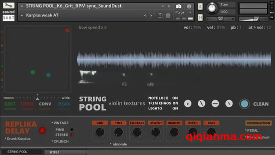 STRINGPOOL的真正乐趣在于,你可以通过BPM与modwheel(或CC1)同步的弓形节拍分割实时变形,同时也使用你的键盘后触(或CC你的选择)的音量表达,以创造现实的人类小提琴的声音。此外,每一个控制可以自动在您的DAW或midi学习不现实的人类暴力的声音。