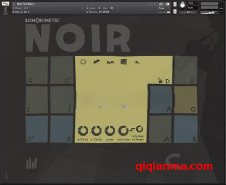 在黑色中,我们把所有三个录制的管弦乐部分在一个单独的部分乐器,这使得组合不同的乐器组超级容易,当然,我们有我们信任的随机按钮,将提供12个新的短语每按一次。