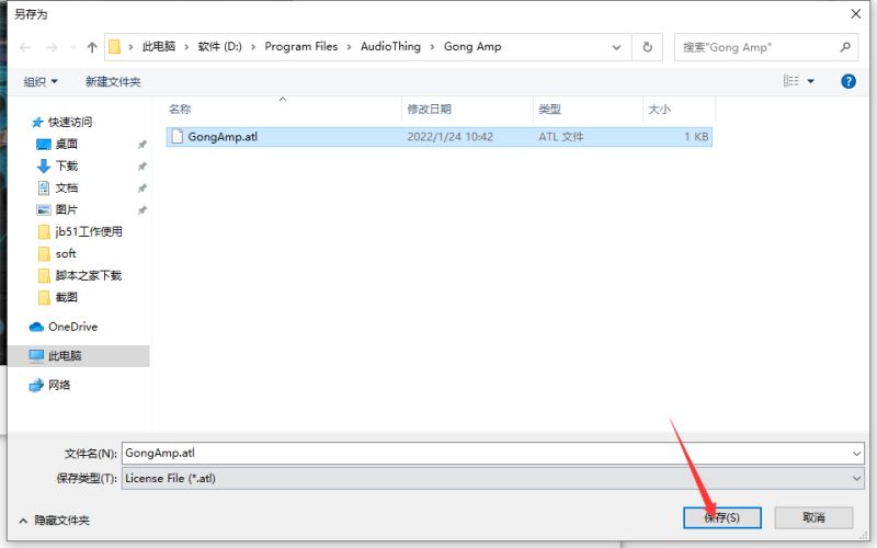 8.出现文件夹弹窗,找到软件安装目录,选择gongamp.atl文件,点击保存,如图