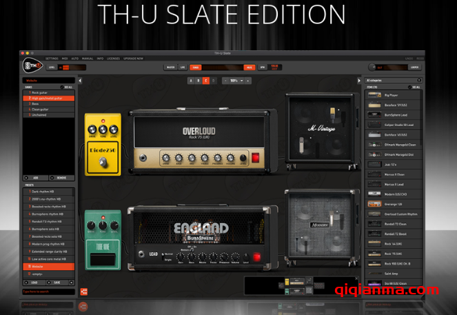 Overloud TH-U Slate Edition 是 All Access Pass 的最大特色之一。您将获得 100 多个模型件,包括 32 个新放大器、39 个新箱体(包括 15 个 OwnHammer Slate Exclusive)和 31 个新效果踏板和模块。TH-U Slate Edition 具有独有的 OwnHammer 脉冲响应,并利用专有的钻机播放器技术,允许用户重现制造商捕获的整个钻机。