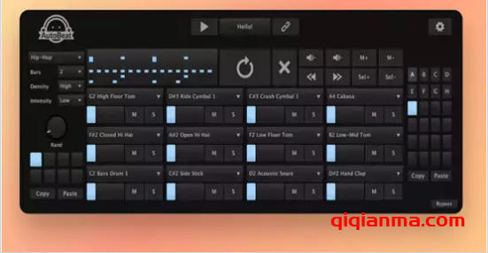 – 多种风格选择,包括随机和混合 – 12 个音轨,带有单独的静音、独奏、音量和左/右微移控制