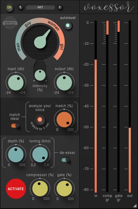 智能匹配:好像最好的EQ扫描还不够,用户可以将此功能与Voxessor的智能匹配结合使用。按下学习按钮(分析用户的声音)几秒钟将检测用户说话者的声音特征。Match功能会对其进行EQ,使其听起来尽可能接近理想的声音。