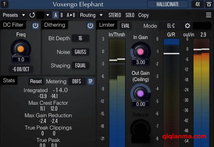 Elephant 还具有 DC 偏移滤波器和带有可选噪声整形的高品质位深度转换器,让您轻松完成音乐和音频制作!